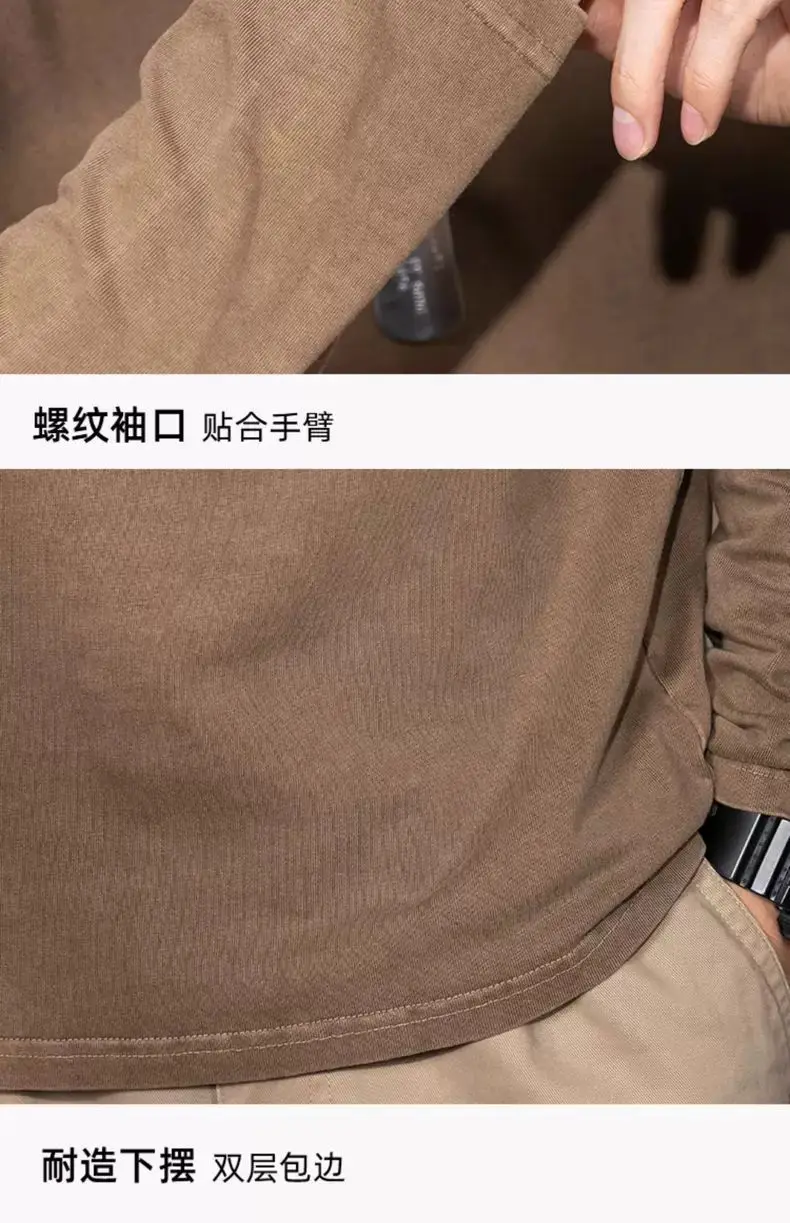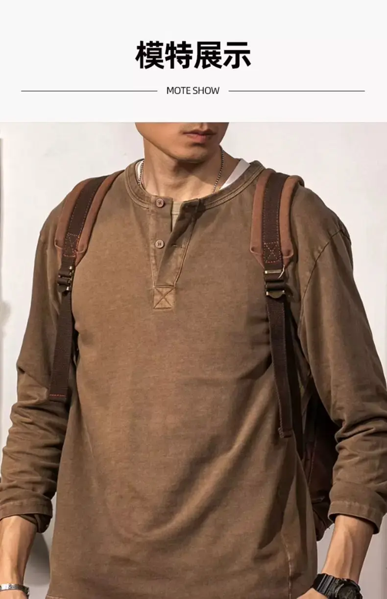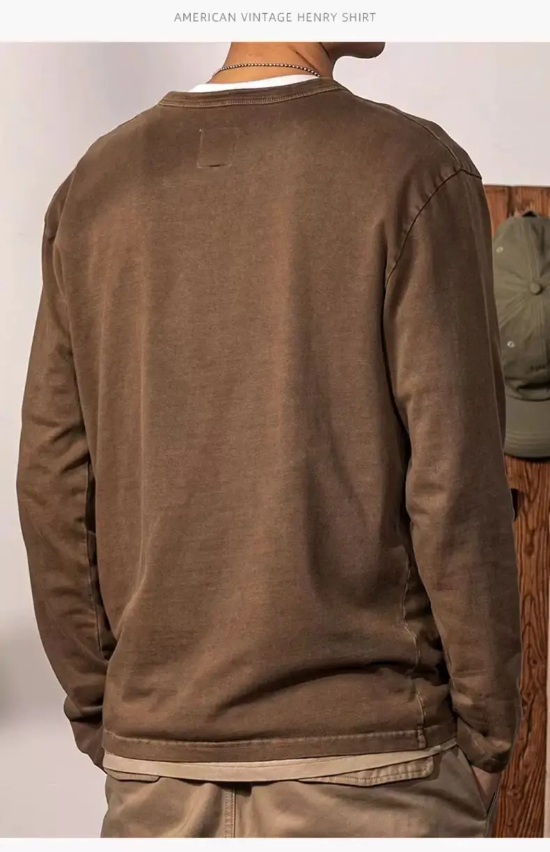 American Retro Henry Neck Long-sleeved T-shirt Spring and Autumn New Men's Solid Color Loose Base Shirt Underwear Top