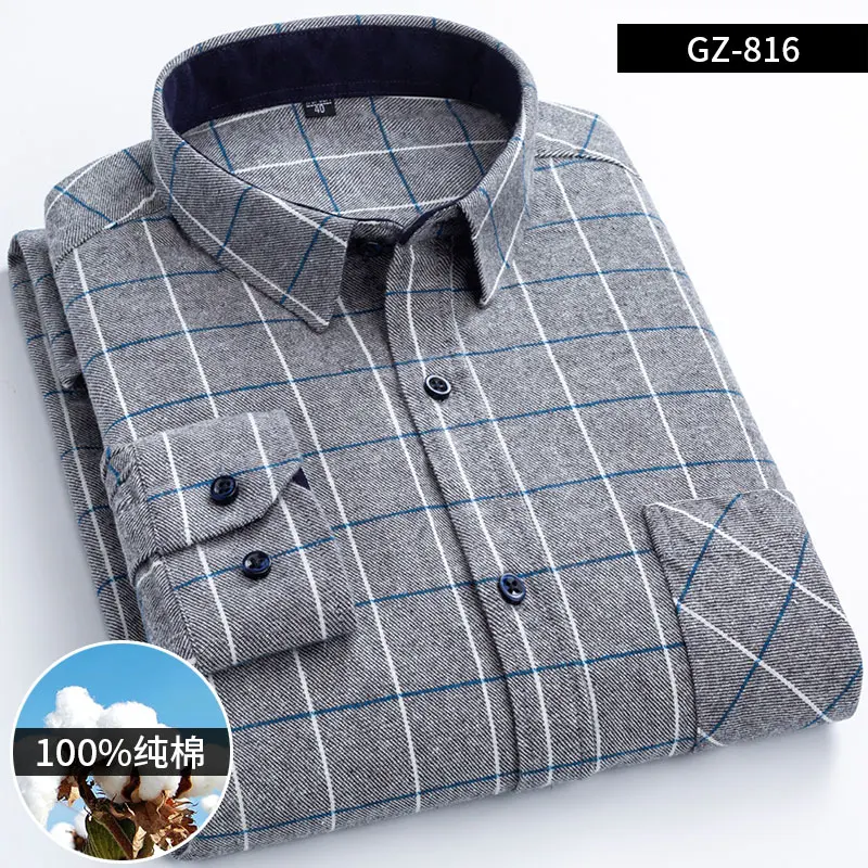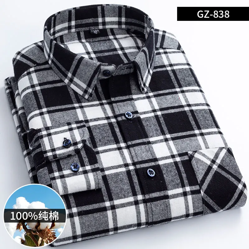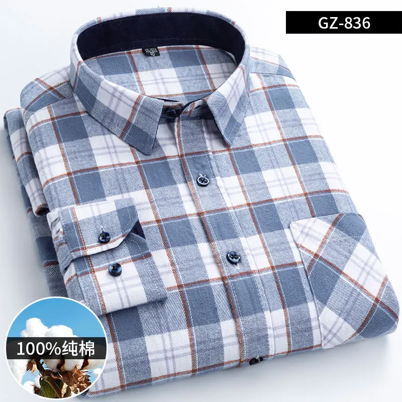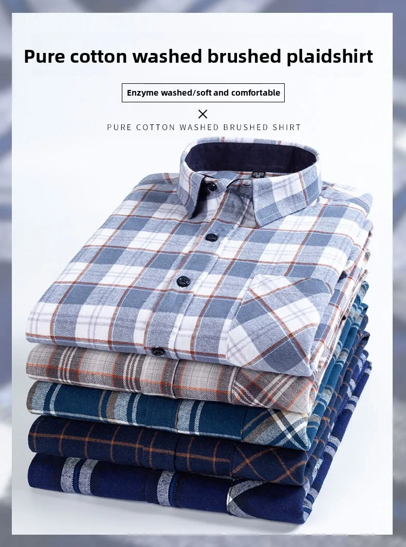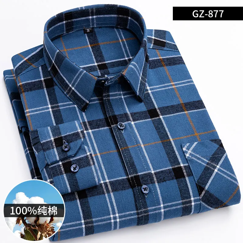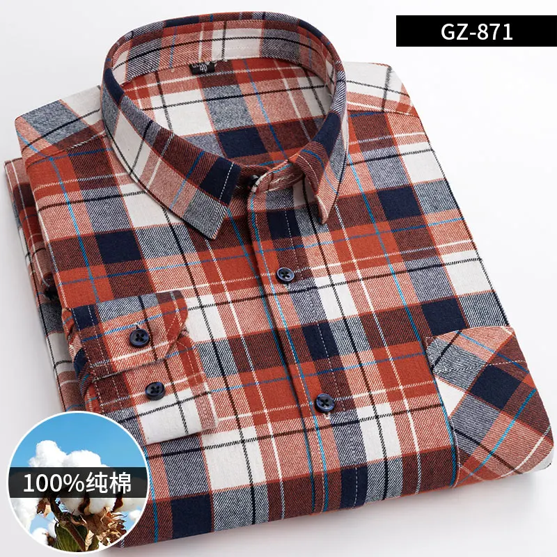 Pure Cotton Men's Plaid Shirt Long Sleeve Regular Fit Men Casual Oversized Shirt Leisure Autumn Male Blouse New Plus Size shirt